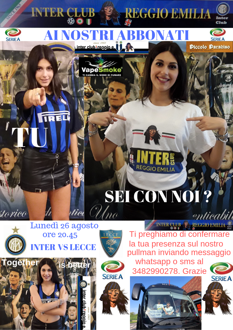 Gli abbonati dell’Inter Club Reggio Emilia sono pregati di confermare la propria presenza sul nostro pullman seguendo le istruzioni riportate nella locandina qui acclusa.
