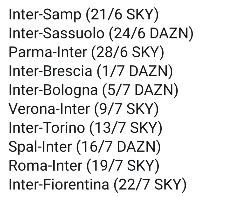 domenica 21 giugno ore 21.45 Inter- Sampdoria