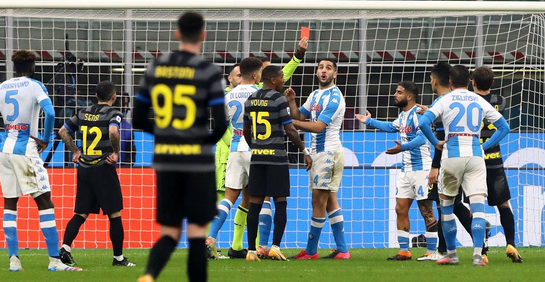NOTE: Espulso al 27′ st Insigne (N). Ammoniti: Brozovic, Lukaku, Skriniar, D’Ambrosio, Handanovic (I); Bakayoko, Ospina, Lozano (N). Recupero: 2′ pt, 4′ st.