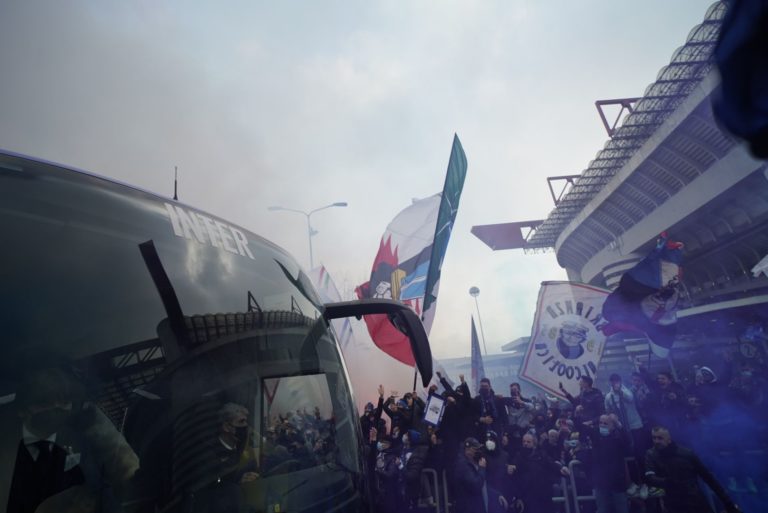 Già una settimana prima del fischio d’inizio l’aria milanese la si può respirare ovunque perché ovunque c’è un interista e ovunque c’è un milanista c’è Milano con il suo derby. La tensione e i riti propiziatori si sprecano tanto sulle rive del Naviglio che su quelle del Tevere a Roma, sul lungo mare di Via Caracciolo a Napoli, sotto la Mole di Torino, a Little Italy a New York, sulle spiagge di Copacabana a Rio o all’interno dei grattacieli di Shinjuku a Tokyo. Ci sono Inter Club e Milan Club dappertutto. L’attesa è trepidante anche in tempi di pandemia che può limitare le libertà degli individui, ma non può soffocare la passione nerazzurra e rossonera. Le frange più estreme del tifo interista e milanista hanno voluto essere vicine alle proprie squadre nel giorno del derby e si sono date appuntamento ai lati opposti all’esterno dello stadio di S.Siro, il tempio del calcio meneghino intitolato a Giuseppe Meazza indimenticato campione che ha militato su entrambe le sponde del Naviglio. Le immagini dei cori, delle bandiere e dei fumogeni hanno fatto il giro del mondo via social e tutti i fan rossonerazzurri si sono sentiti lì, sotto le mura del loro tempio. Eravamo tutti ai piedi del mitico S. Siro ad accogliere i pullman delle squadre per spingere la nostra alla vittoria per avere la supremazia cittadina, perché Milano è la città di cui tutti i fan rossonerazzurri si sentono parte, e per la supremazia in classifica poiché in palio c’era il primato della serie A. Non avveniva da tanto, troppo tempo che il derby per eccellenza vedesse Inter e Milan ai primi due posti del nostro massimo campionato. Si è tornati ai tempi della “Milano da bere” con la sfida tra il “Mago” Herrera e il “Paron” Rocco, Mazzola contro Rivera. Ora a fare le veci di H.H c’è Antonio Conte che fa leva sull’aspetto psicologico, sull’intensità e su fulminee e letali ripartenze proprio come il “Mago”, mentre Pioli è pragmatico come lo era il “Paron” nell’affrontare l’istrionico dirimpettaio interista e la sfida tra il “Baffo” e l’ “Abatino” rivive nel duello tra i bomber e acerrimi nemici Lukaku e Ibra.