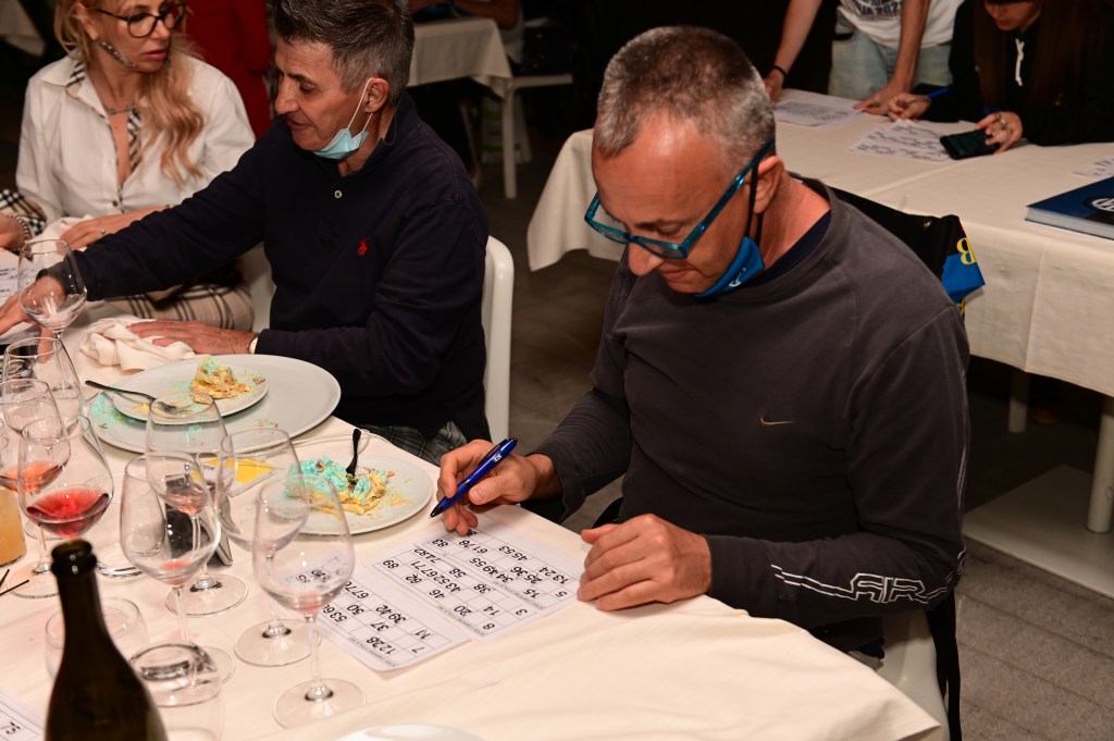 Marco impegnato a scrutare le sue schede della tombola. La vittoria e il premio gli sono sfuggiti. Sarà per la prossima Festa Scudetto..