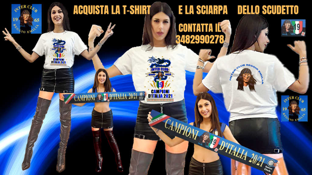 In Sede, presso ReggioSport, potete prenotare acquistare la nostra T-SHIRT e la nostra SCIARPA CELEBRATIVE DELLO SCUDETTO N. 19 e gli alticoli sotto riportati del merchandising dell’INTER CLUB REGGIO EMILIA (il pagamento dell’importo dovuto per acquistare l’articolo scelto va effettuato al momento della prenotazione).