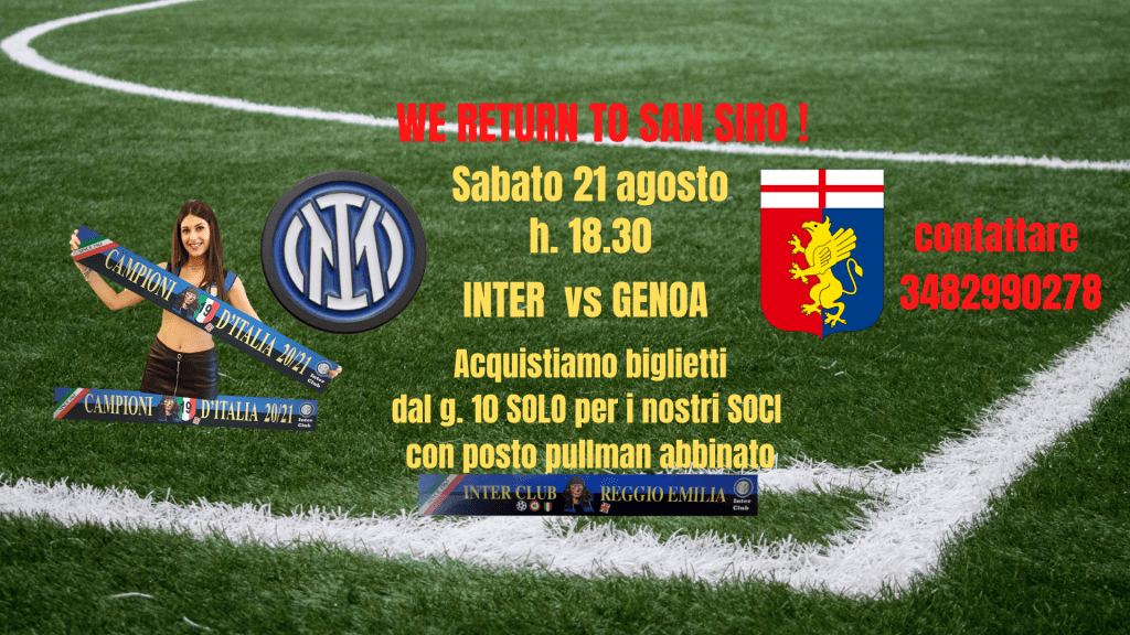 INTER-GENOA : INFO ACQUISTO BIGLIETTI PER CONTO DEI NOSTRI SOCI E PULLMAN
