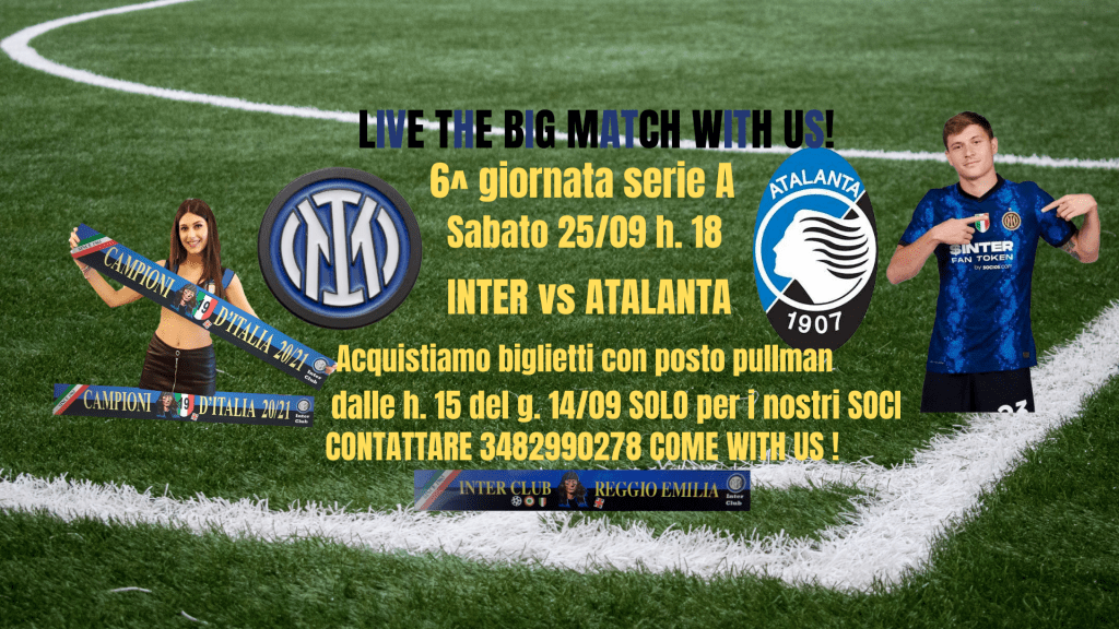 INTER VS ATALANTA : INFO ACQUISTO BIGLIETTI PER CONTO DEI NOSTRI SOCI E PULLMAN