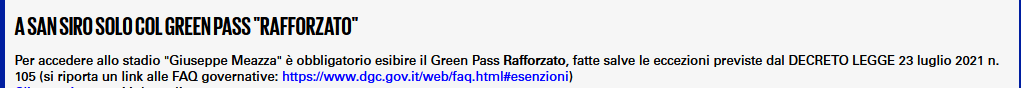 Dalle ore 12.00 del 28 dicembre 2021 fino ad esaurimento posti i nostri soci diversamente abili con certificato di invalidità al 100% e che necessitano di assistenza continua (condizione che deve essere riportata sul certificato di invalidità) potranno richiedere, tramite il nostro club, i biglietti loro riservati a titolo gratuito.
