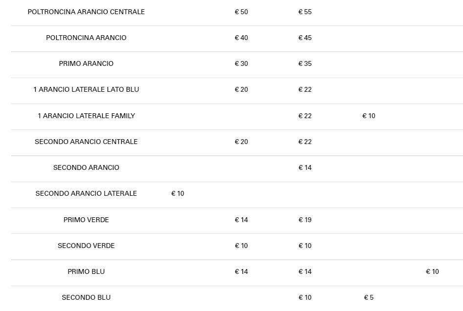 IL LISTINO PREZZI DEI BIGLIETTI E’ RIPORTATO DOPO LE FASI DI VENDITA
