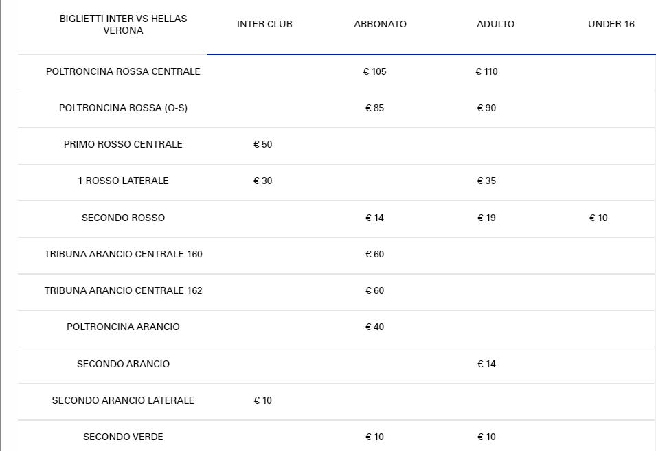 Listino prezzi Inter vs Hellas Verona FASE 3 vendita libera aggiornato al 5/4