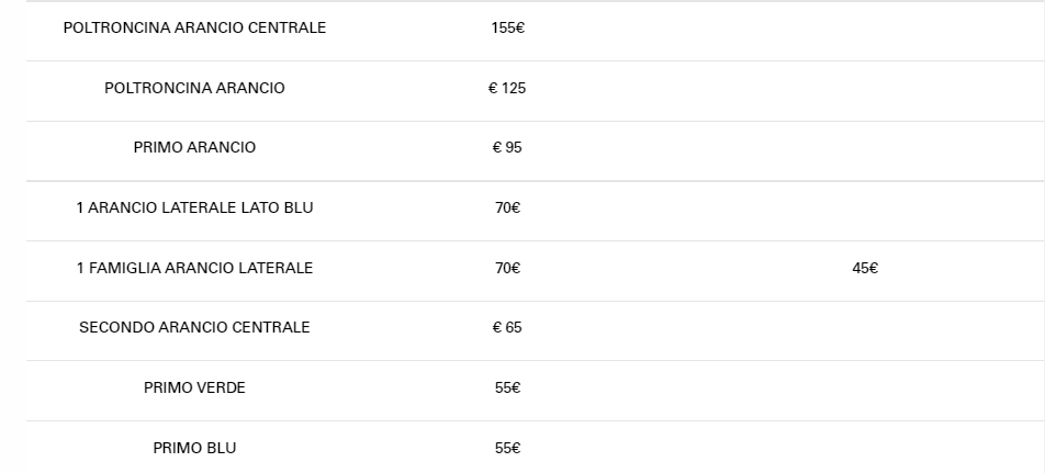 I LISTINI PREZZI DEI BIGLIETTI SONO RIPORTATI DOPO LE FASI DI VENDITA
