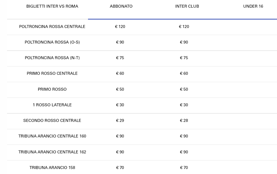 Listino prezzi Inter vs Roma abbonati 2019/20 e soci Inter Club (terminata)