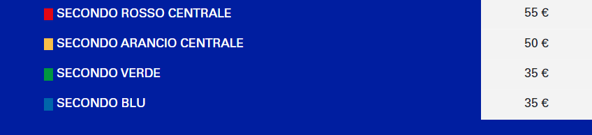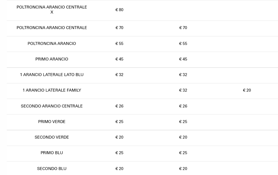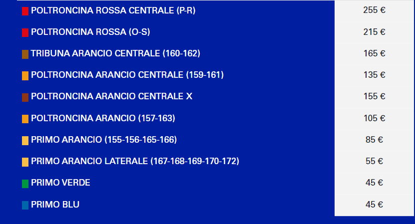N.B. : I LISTINI PREZZI DEI BIGLIETTI SONO RIPORTATI DOPO LE FASI DI VENDITA