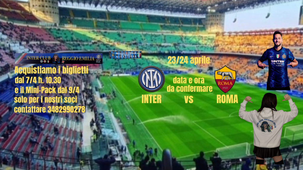 Di seguito le info per i nostri SOCI delle fase di vendita e dei relativi listini prezzi per l’acquisto, TRAMITE IL NOSTRO CLUB, dei biglietti per la partita Inter-Roma, gara di ritorno di campionato, in programma nel weekend 23/24 aprile (data e ora da confermare) a San Siro.