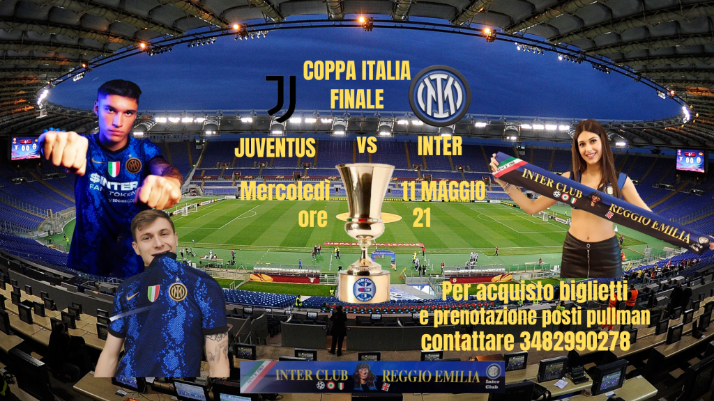 Per acquistare il biglietto della partita TRAMITE L’INTER CLUB REGGIO EMILIA e prenotare il posto pullman per la trasferta allo Stadio Olimpico di Roma occorre CONTATTARE IL N. 3482990278 con messaggio whatsapp o sms (soltanto dopo le h. 18 telefonando direttamente).