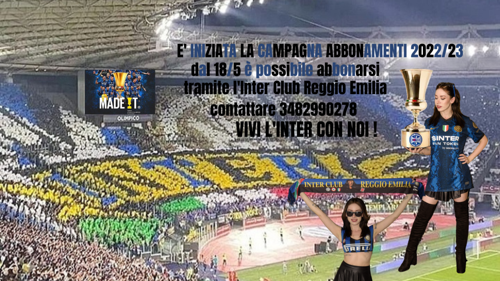 (NON SEI SOCIO DELL’INTER CLUB REGGIO EMILIA ? Scopri i vantaggi del tesseramento 2022/23 al nostro Inter Club contattando il n. 3482990278).