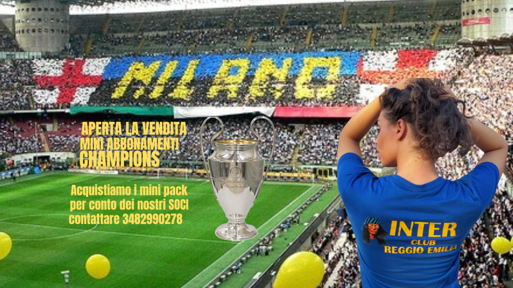 Successivamente al sorteggio del Group Stage, che avverrà nella giornata di mercoledì 25 agosto, provvederemo a comunicare ai nostri SOCI le modalità di vendita, disposte da FC Internazionale per i posti rimasti liberi, sia come eventuale pacchetto di abbonamento sia per i biglietti dei singoli match.