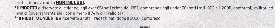 NOTE E PRECISAZIONI SUI BIGLIETTI RIDOTTI