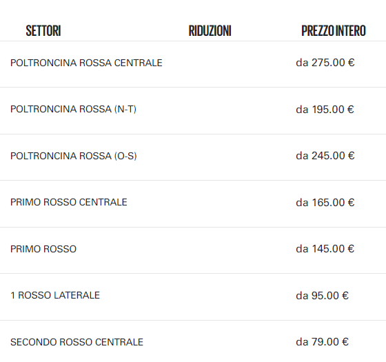 Il prezzo del biglietto del SETTORE OSPITI è di 30€ (cui verranno sommate le commissioni per il servizio svolto).
