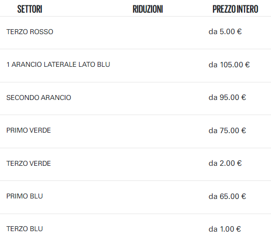 LISTINO PREZZI DERBY RISERVATO ABBONATI SECONDO BLU