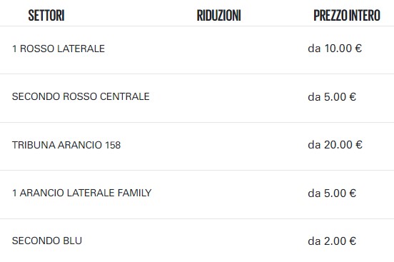 LISTINO PREZZI INTER-ATALANTA (aggiornato al 30/1 )