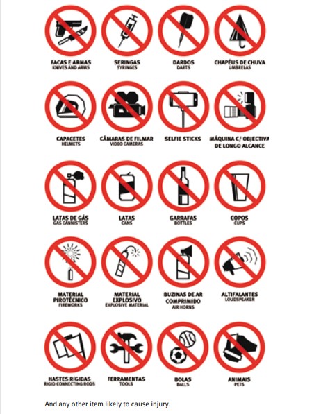 and removal of items that are prohibited to use, possess, hold or bring into the Stadium on Match
