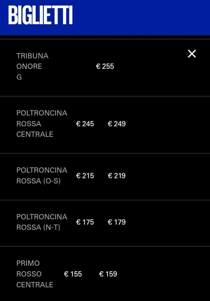 LISTINO PREZZI INTER-ROMA (Apertura vendita 21/9)