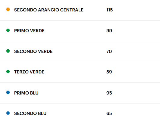 Sono esclusi dalla “conferma posto” i settori riservati alla UEFA (Tribuna Arancio 160/162, Poltroncina Rossa Centrale P, Poltroncina Rossa S, Secondo Arancio Centrale 268/270 e Terzo Rosso Centrale 328/330).