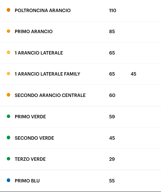N. B. : Il listino prezzi “conferma posto abbonati” é riportato di seguito dopo le fasi di vendita.