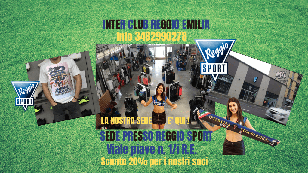 REGGIO SPORT APPLICA AI SOCI DELL’INTER CLUB REGGIO EMILIA IL 20 % DI SCONTO SU TUTTI GLI ARTICOLI ESPOSTI (esclusi quelli già scontati – occorre mostrare la tessera Inter Club RE della stagione 2021/22)