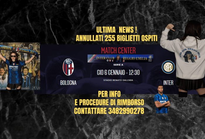 PROSEGUE LA VENDITA DI BIGLIETTI IN ALTRI SETTORII Informiamo i nostri SOCI che possiamo acquistare per loro conto biglietti per la partita Bologna vs Inter nei settori rimasti disponibili : … Continua la lettura di Biglietti annullati
