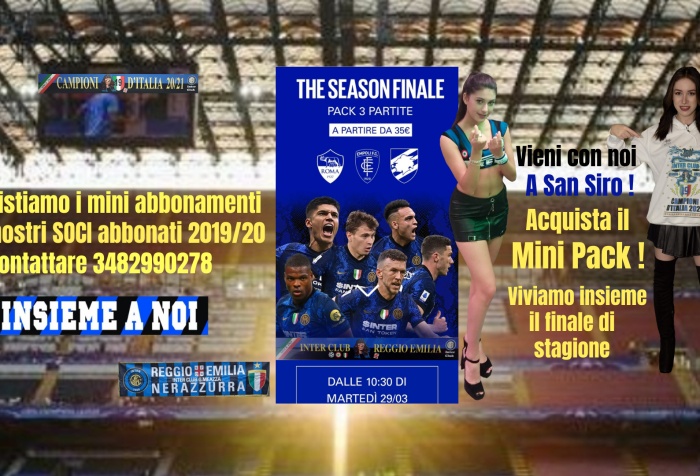 ABBONAMENTI 2022/23 SI PARTE ! ABBONATI ALLE PARTITE DELL’INTER CON L’INTER CLUB REGGIO EMILIA La vendita degli ABBONAMENTI sarà suddivisa in diverse FASI temporali. La Fase 1 riservata ai rinnovi, in … Continua la lettura di Abbonamenti