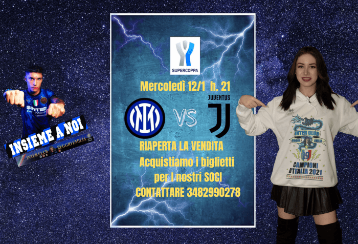 Di seguito i listini prezzi per i nostri SOCI per l’acquisto, TRAMITE IL NOSTRO CLUB, dei biglietti validi per la FINALE di SUPERCOPPA ITALIANA 2021 Inter vs Juventus in programma … Continua la lettura di Supercoppa