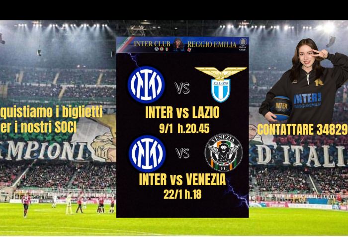 L’INTER A REGGIO EMILIA SASSUOLO vs INTER INFO ACQUISTO BIGLIETTI PER I NOSTRI SOCI Di seguito tutte le info utili per I NOSTRI SOCI relative all’accesso allo stadio e all’acquisto, TRAMITE IL NOSTRO … Continua la lettura di SassuoloInter